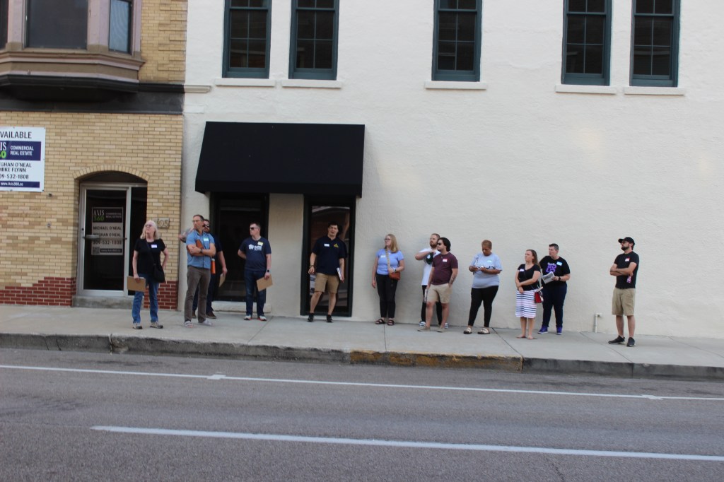 This past Wednesday, July 9th, a group of sixteen volunteers worked to vision what could replace the buildings on the former Front N Center lots. Last year, the public was notified about the demolition of these long vacant buildings downtown due to long-term owner neglect. We wrote about our response here.