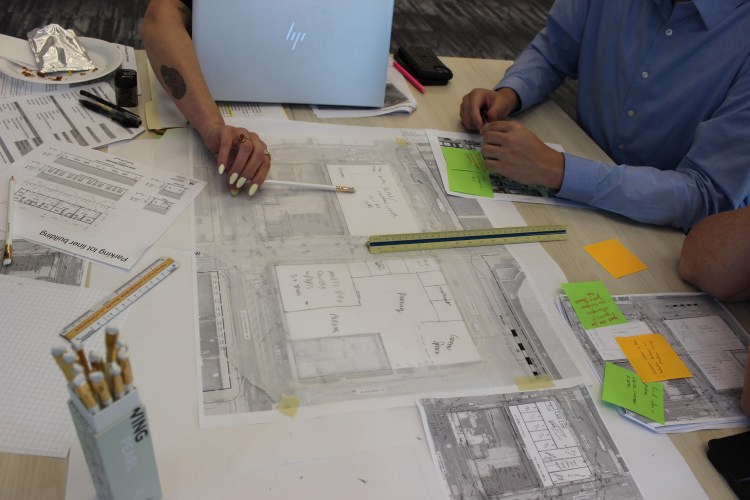 We divided our charrette team into three groups: low intensity, medium intensity, and high intensity proposals for the lots in order to give varied options of what the future holds for these lots. Several urban planners were in attendance, as well as engineers and city staffers.