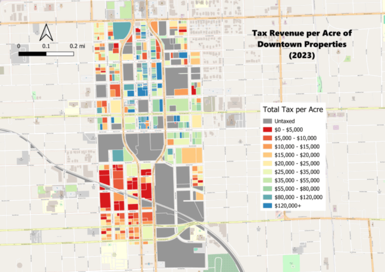 Our 2024 Priority Campaign to conduct a survey of Downtown Bloomington to gauge vacancies, ADA compliance, and complete a tax analysis. In the cold of January, we assembled a cohort of vest-wearing volunteers to go block by block to analyze downtown buildings. The final product included maps, social media videos, and long form posts to educate residents about the heart of our community.