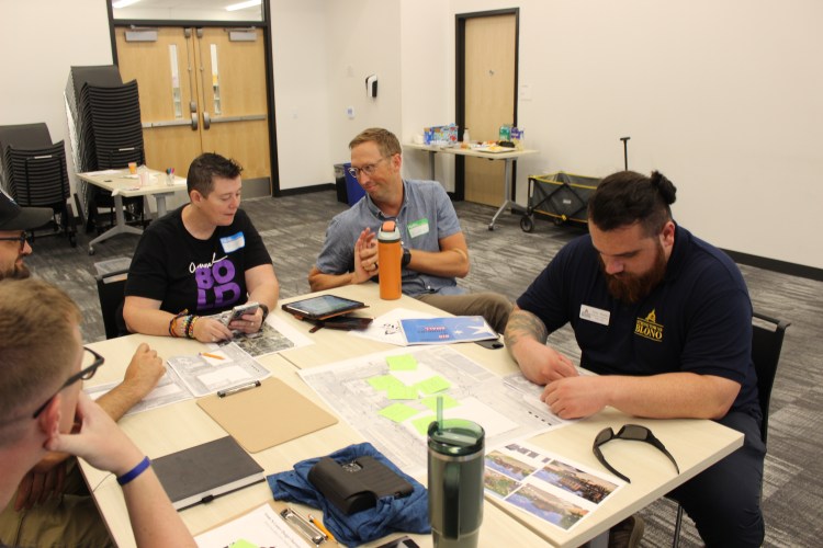 The charrette focused on the lots of Front N Center and its vicinity would propose plausible alternatives to consigning these spaces to parking lot. Though the Urban Centers Revitalization Committee of Strong Towns Blono ran the exercise, a variety of community volunteers participated.